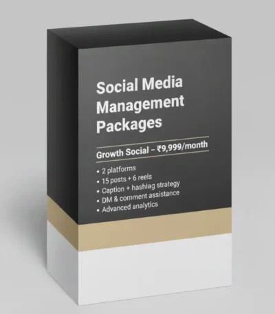 Our Service Categories Pick a package that fits your goals Content Shoot Packages Digital Marketing Packages Graphic Design Packages SEO Packages Social Media Management Web Development Packages Hurry up to buy Our Best Seller From startups to established brands—choose the perfect plan to scale your digital presence All Packages Marketing Design & Development Quick view Add to wishlist Add to cart Starter Social Social Media Management ₹4,999.00 Quick view Add to wishlist Add to cart Growth Social Social Media Management ₹9,999.00 Quick view Add to wishlist Add to cart Brand Booster Social Media Management ₹14,999.00 Quick view Add to wishlist Add to cart Premium Presence Social Media Management ₹24,999.00 Quick view Add to wishlist Add to cart Kickstart Ads Digital Marketing Packages ₹7,999.00 Quick view Add to wishlist Add to cart Growth Ads Digital Marketing Packages ₹14,999.00 Quick view Add to wishlist Add to cart Performance Pro Digital Marketing Packages ₹24,999.00 Quick view Add to wishlist Add to cart Scale Up 360 Digital Marketing Packages ₹39,999.00 Quick view Add to wishlist Add to cart Basic Business Website Web Development Packages ₹14,999.00 Quick view Add to wishlist Add to cart Professional Website Web Development Packages ₹24,999.00 Quick view Add to wishlist Add to cart E-Commerce Starter Web Development Packages ₹34,999.00 Quick view Add to wishlist Add to cart Premium E-Commerce Web Development Packages ₹59,999.00 Quick view Add to wishlist Add to cart Local SEO SEO Packages ₹6,999.00 Quick view Add to wishlist Add to cart Standard SEO SEO Packages ₹12,999.00 Quick view Add to wishlist Add to cart Advanced SEO SEO Packages ₹24,999.00 Quick view Add to wishlist Add to cart Enterprise SEO SEO Packages ₹49,999.00 Quick view Add to wishlist Add to cart Basic Creative Pack Graphic Design Packages ₹3,999.00 Quick view Add to wishlist Add to cart Business Creative Pack Graphic Design Packages ₹7,999.00 Quick view Add to wishlist Add to cart Premium Creative Pack Graphic Design Packages ₹12,999.00 Quick view Add to wishlist Add to cart Full Brand Pack Graphic Design Packages ₹24,999.00 Quick view Add to wishlist Add to cart Basic Shoot Content Shoot Packages ₹7,999.00 Quick view Add to wishlist Add to cart Business Shoot Content Shoot Packages ₹14,999.00 Quick view Add to wishlist Add to cart Premium Content Shoot Content Shoot Packages ₹24,999.00 Quick view Add to wishlist Add to cart Brand Film Pack Content Shoot Packages ₹49,999.00